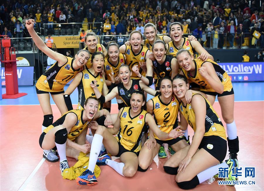 4月5日,瓦基弗银行队球员在竞赛后庆祝成功。当日,在2016-2017欧洲女子排球冠军联赛筛选赛阶段竞赛中,朱婷地点的瓦基弗银行队主场以3比1打败瑞士沃雷罗苏黎世队,以两回合总比分2比0的成果晋级四强。