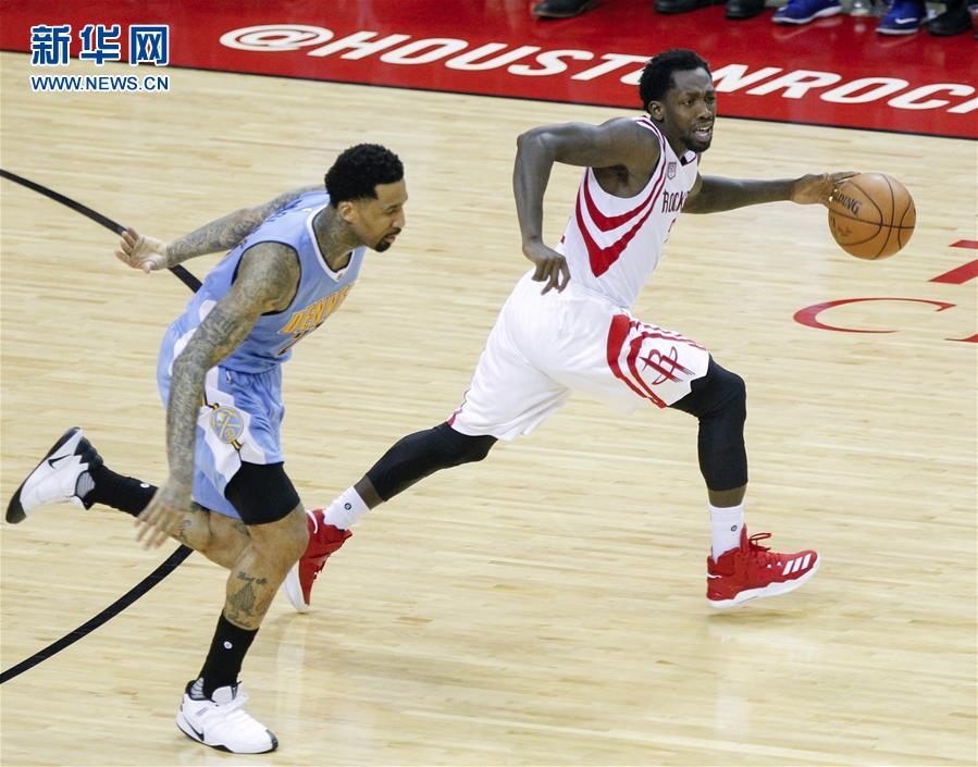 4月5日,火箭队球员阿里扎(左)打破掘金队球员加里纳利的防卫。当日,在2016-2017赛季NBA常规赛中,休斯敦火箭队主场以110比104打败丹佛掘金队,然后确定西部赛区第三。