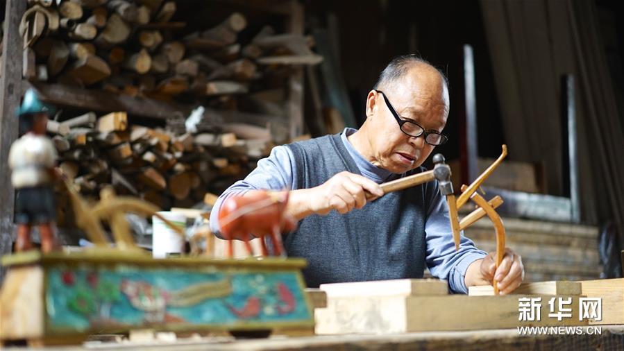 4月6日,郭西灿在家中制造耕具模型。眼下正值春耕,本年72岁的郭西灿虽不能下地耕耘,却用一种特别的方法记载自己的“春耕回想”。郭西灿家住江西省万载县安康大街北门社区,从事木匠手工已有50多年。近年来,他凭着自己的回忆,使用木材废料制造传统耕具模型,已制造出木犁、耙、独轮车、纺车、石磨、水车等模型200多件。这些耕具模型形象传神,有的还能“动”起来。在郭西灿的精心制造下,许多上世纪80年代曾经盛行的耕具再次展现在人们眼前,让人们从头了解旧日的农耕风情,感触传统的农耕文明。